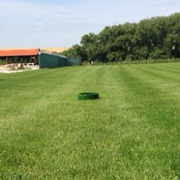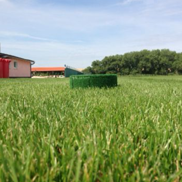 - Plastringen dækket med "kunstgræs" har en væsentlig lavere risiko for skader på grund af dets bløde materiale end hævede værktøjer eller andre visuelle barrierer.