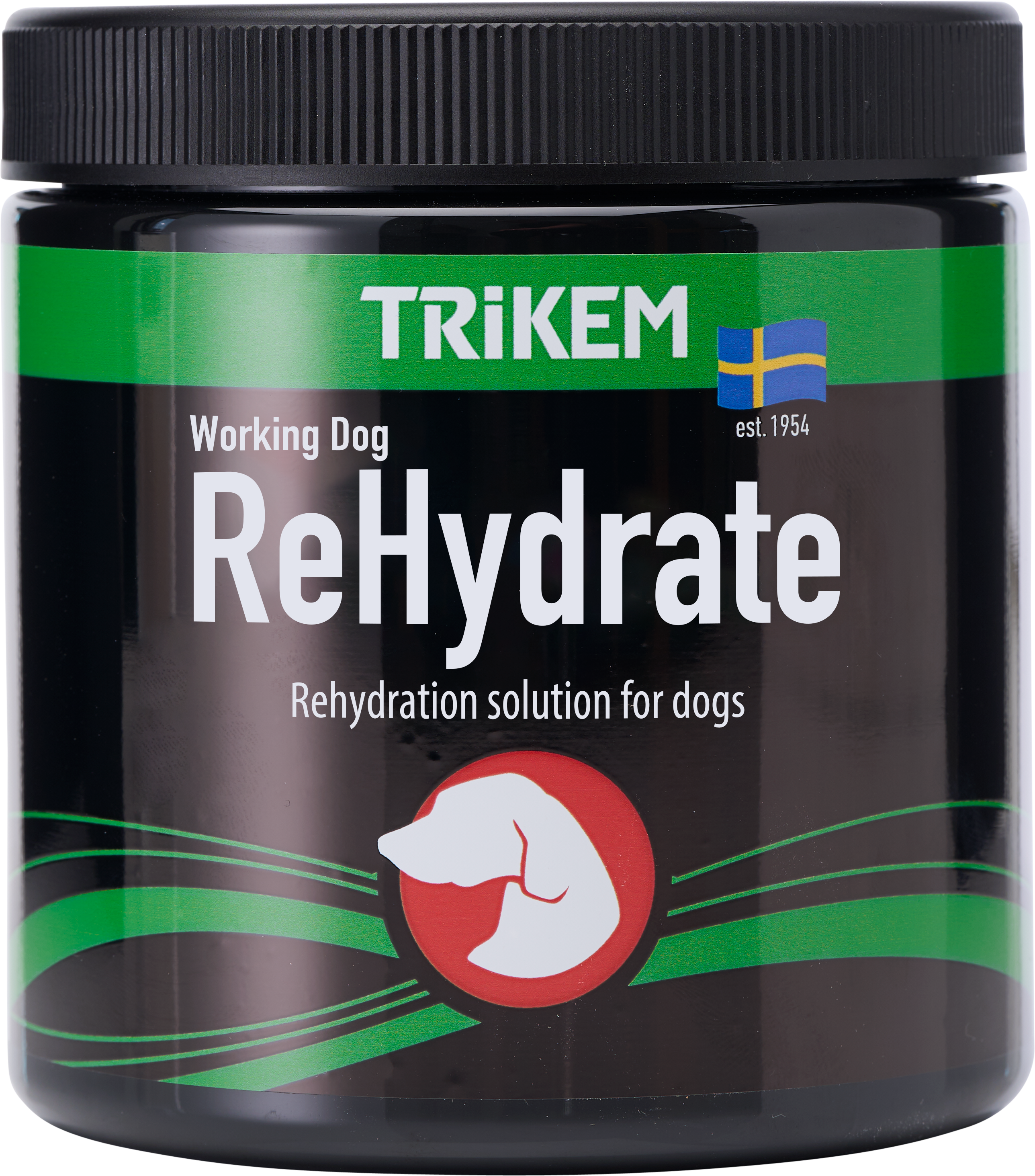 • Working Dog Rehydrate stimulerer hunden til at drikke, samtidig med at det giver de elektrolytter, som hunden skal bruge for at opretholde kroppens saltbalance.