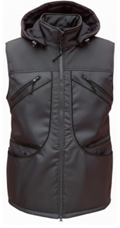 - Den er udstyret med mange lommer, blandt andet en tunnellomme bagerst på ryggen, to forlommer i bunden, to større forlommer øverst og to brystlommer med lynlås. Yderligere funktioner er, at den er ridsefast, vandafvisende og har en linningsjustering med snøre.
