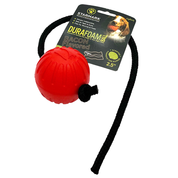• Durafoam Bacon Ball med baconsmag er lavet af blødt skum, men er stadig meget holdbart.