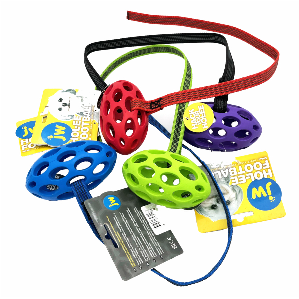 JW HOL-EE Fodbold med line. (XSmall) HEBRÜ 2062 Fremstillet af slidstærkt naturgummi. På grund af sit specielle design er Hol-ee Football meget velegnet til at lægge belønninger i. Hol-ee fodbolden er nem at kaste eller sparke og er blød i hundens mund. 9x5,5cm med line. På lager 60,00 DKK Vis produkt